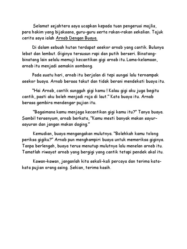 Mereka ialah seekor arnab dan. Pertandingan bercerita tahap 1 teks by mohamad_faishal_2. Teks cerita pertandingan bercerita bahasa melayu tahap 1. Skrip pertandingan bercerita tahap 1 2017. Ppd kota tinggi jom anak johor bercerita johorfm facebook.